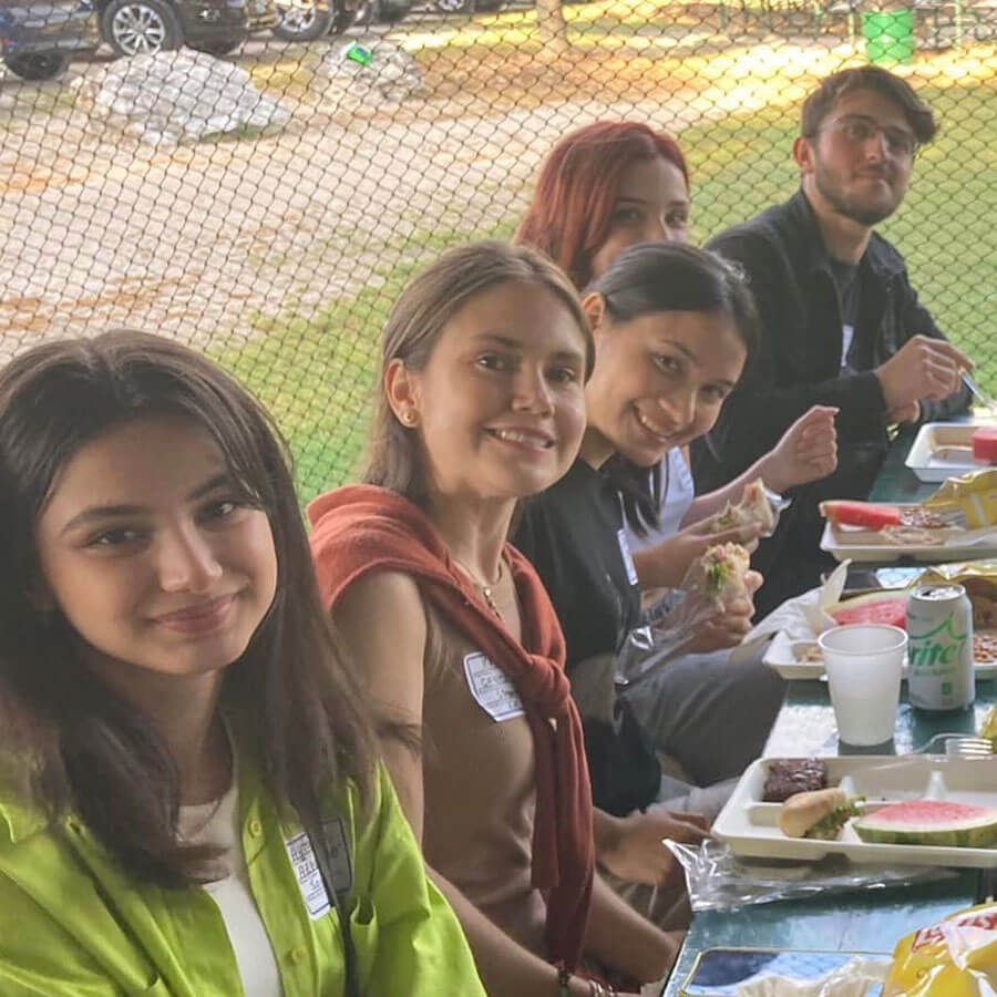 I was also told that the students often whisper and look at their phones during the time the speaker is talking, but they thought they had a solution. They would ask them to leave their outside tables and come in the church, just for my talk, to quiet them down. But they didn’t want to go in — they wanted to linger and talk at their tables outside. So the leader of Bridges finally gave up and took me outside. After just my opening sentence, a holy hush came over them. It was the presence of the Lord. It was completely quiet and eyes were on me for the whole 8 minutes! There were brothers and sisters among them who were praying, smiling, and encouraging me. Thank you sooo much for praying. I want to encourage you, if there is a ministry where you live, to get involved with International Students.
