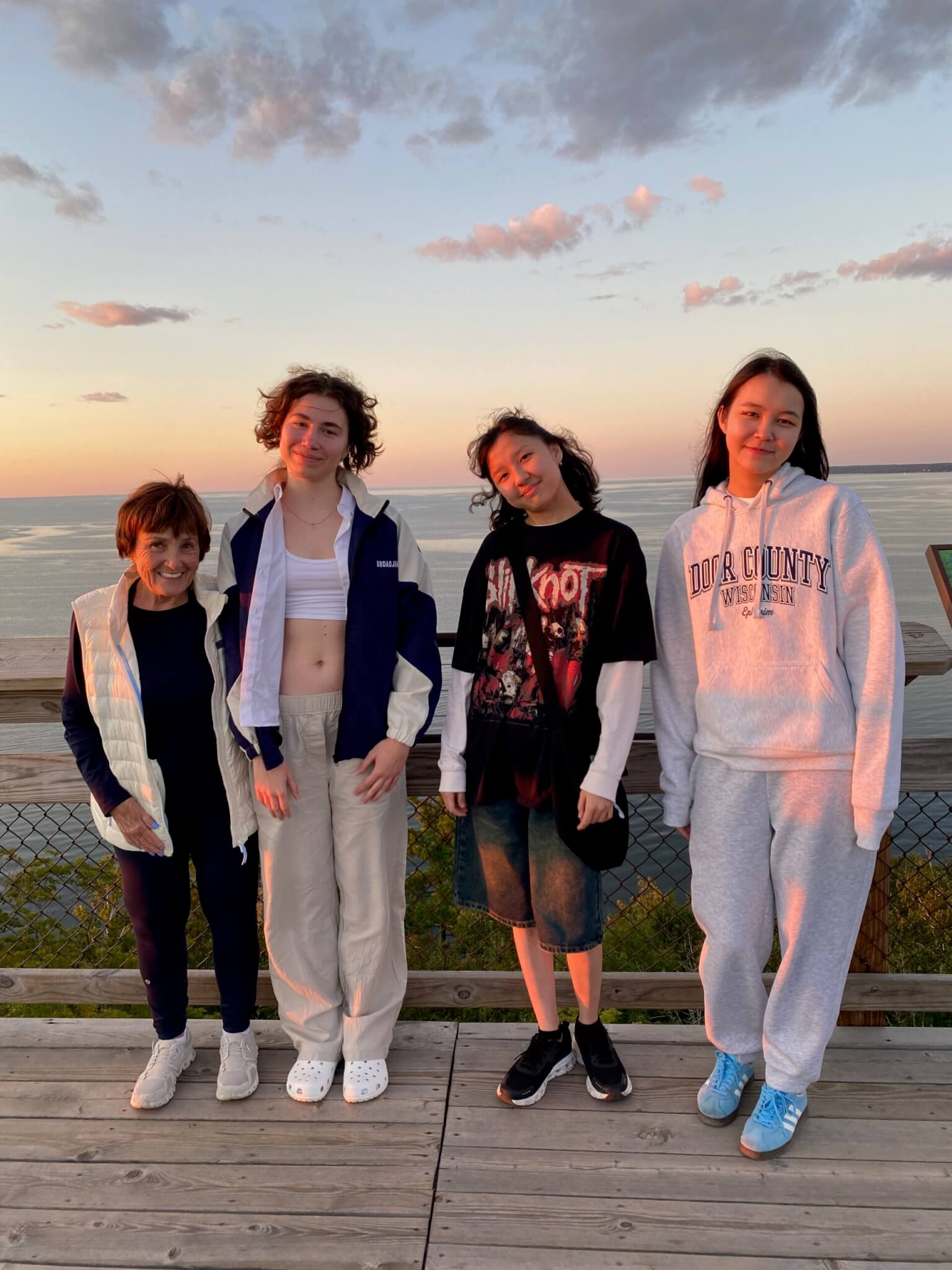 I’m going to share stories from my summer with three international students and Twila’s success in starting a seeker’s Bible study in her neighborhood. I’ll provide you with scriptures to meditate on each day, and I hope to hear your stories, too. I had 9 students, but I only had 2 times with 7 of them because they got so many jobs. Below, on top of a tower in Door County, are the 3 I had over many times. To my right is Angie, from war-torn Ukraine — not eager to return in a week. Her brother is in the army and her mother has been hurt in the bombing. Medina and Di are from Kazakhstan, a Muslim country.